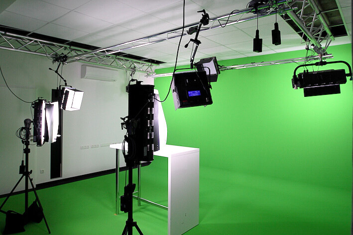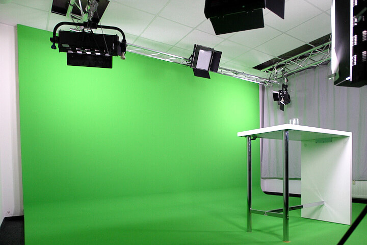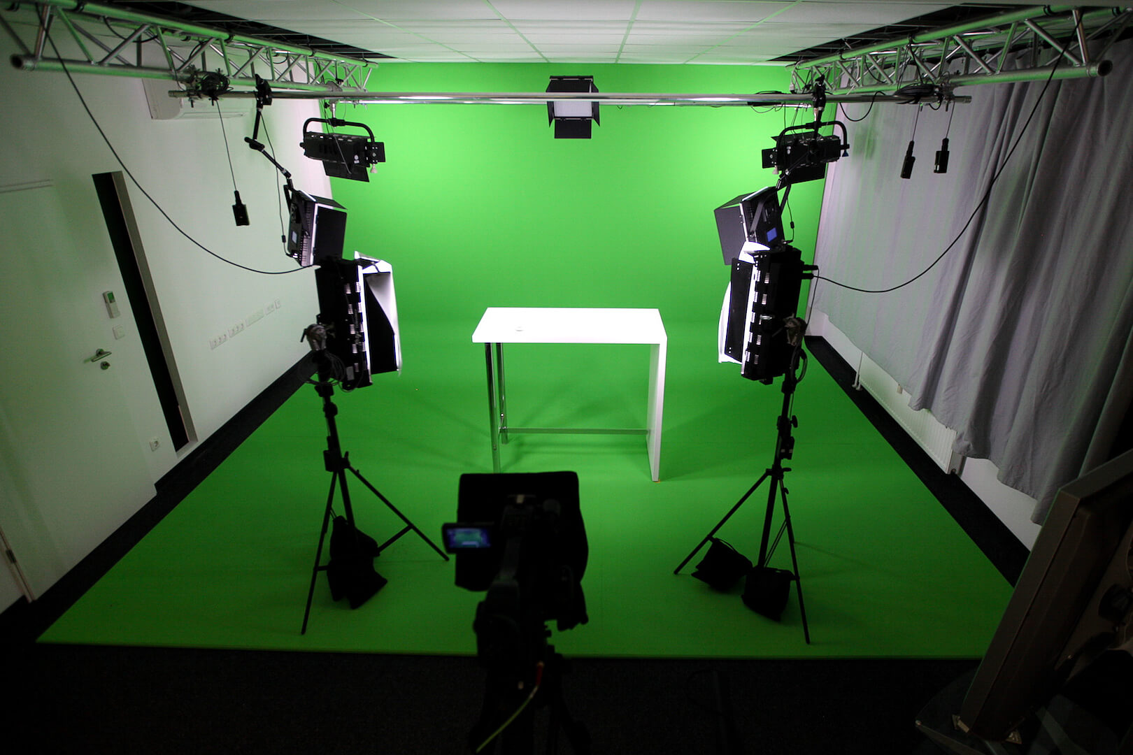 Unser Greenscreen Studio ist perfekt geeignet für Chroma-Key Aufnahmen, Produkt-Shootings, Moderationen, Interviews und kleinere Filmsets. Zum Studio gehören natürlich eine Maske, eine beheizte Ankleide und eine Lounge zum gemütlichen Beisammensein.
